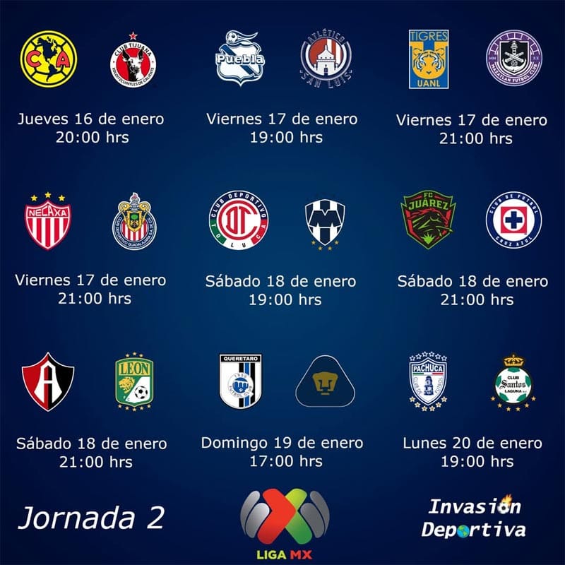 El primer partido como ya comentamos será a las 19 horas en la cancha del estadio La Corregidora donde Gallos de Querétaro le hará los honores a las Águilas del América.