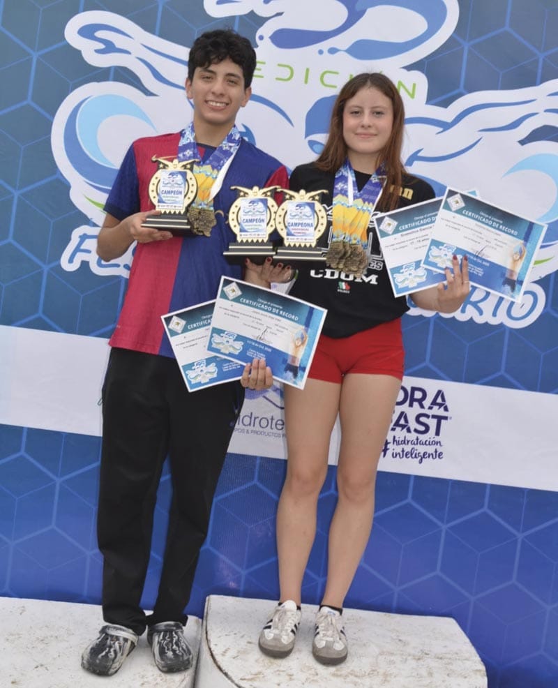 Los campeones individuales, en 10 y menores Ana Paula Rikenbach de Mark’s Swimmers y Dillan Pérez de Huracanes CDMX, en 11-12 Andrea Vega de Albercas Bicentenario Tláhuac y Santiago Guzmán de Polideportivo, en 13-14 Regina Bravo y Jorge Aizpuru de Polideportivo.