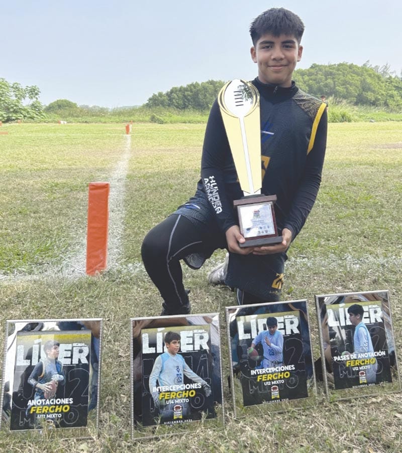 Quien acaparó premios (trofeos) fue Fernando Gutiérrez Chan, fue líder en anotaciones, líder en pases para anotación y líder en pases interceptados esto en la categoría U12 y por si fuera poco líder en intercepciones en la categoría U14.