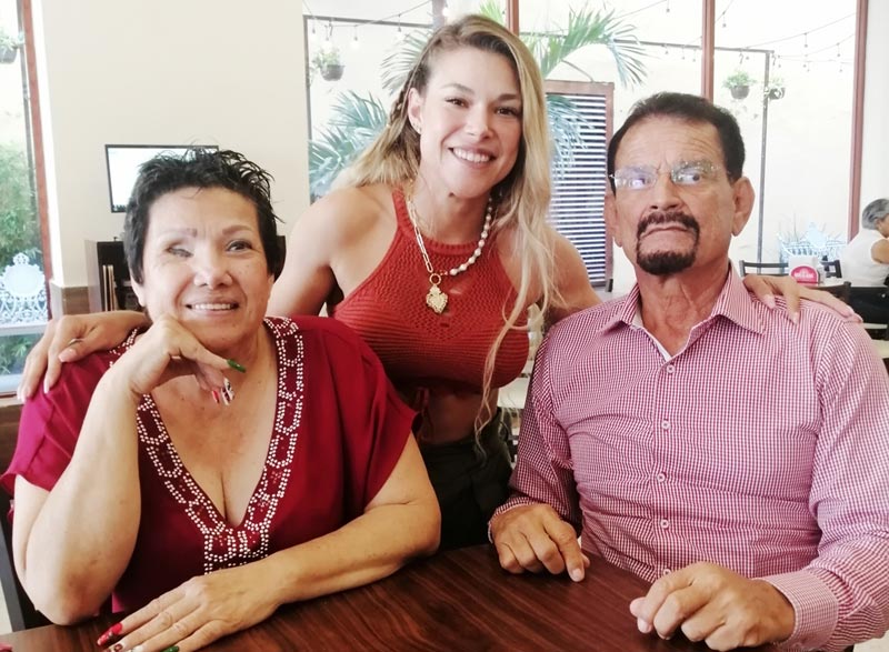En la otra gráfica vemos a Marelli con sus padres, los destacados profesores Martha Beatriz Reyes y Rubén Arrieta.