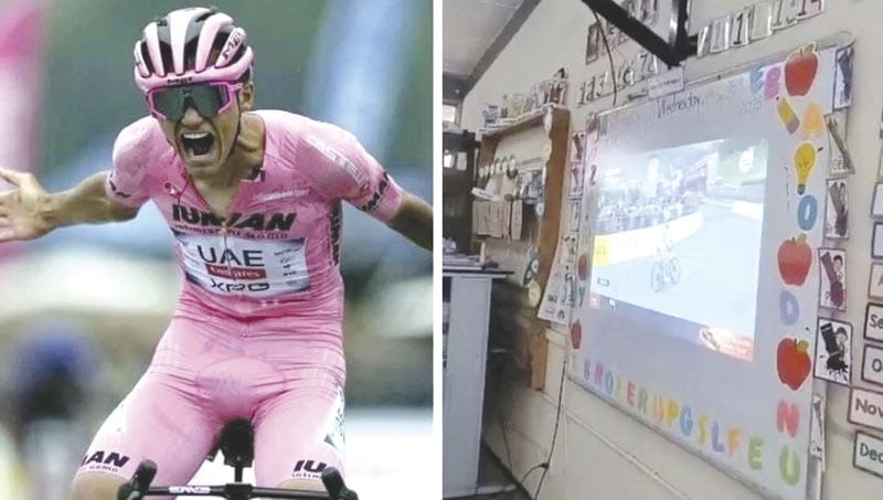 “¡Vamos, ‘Torito’!”. La maestra Yessica en la escuela de Rincón de Romos de Aguascalientes le mostró a sus alumnos la Etapa 17 del Giro de Italia, que ganó el mexicano Isaac del Toro.