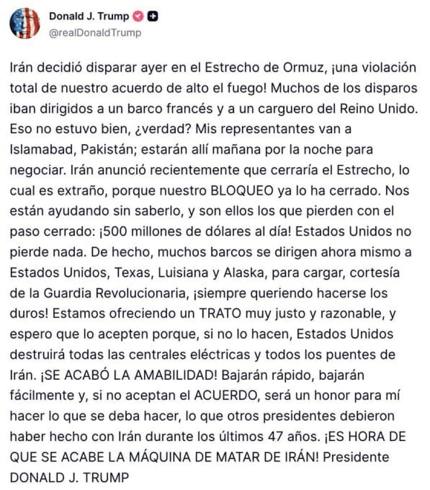 Por la mañana, Trump había asegurado que Irán había aceptado suspender su programa nuclear de forma indefinida y que trabajaría con EU para remover su uranio enriquecido.