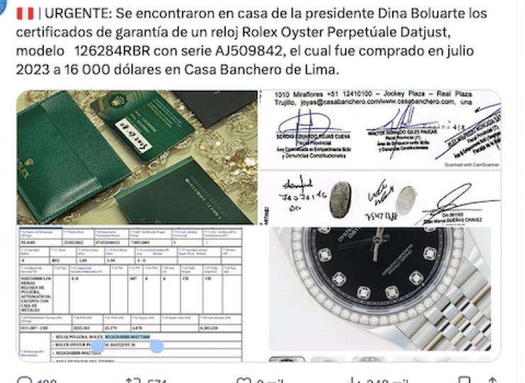 La redada buscaba incautar tres relojes de lujo marca Rolex usados por Boluarte que se han convertido en el nuevo dolor de cabeza de la Mandataria quien tras dos semanas de una denuncia periodística que evidenció el uso de los relojes de lujo no ha explicado cómo llegaron a su muñeca derecha.