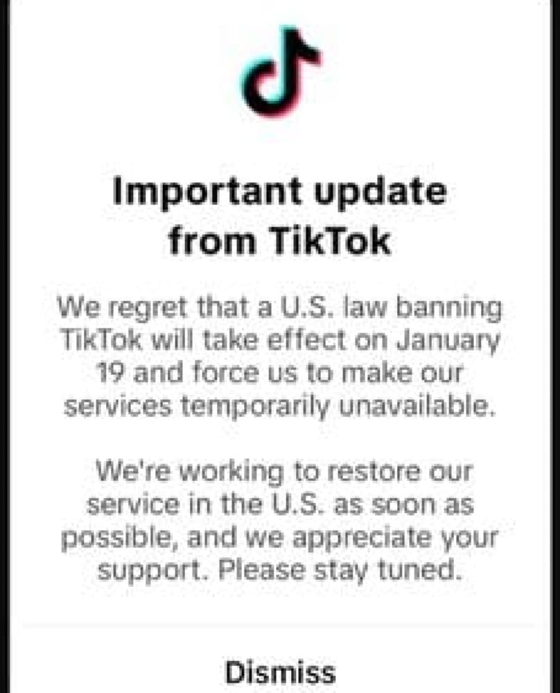“En Estados Unidos se ha promulgado una ley que prohíbe TikTok”, decía el mensaje.