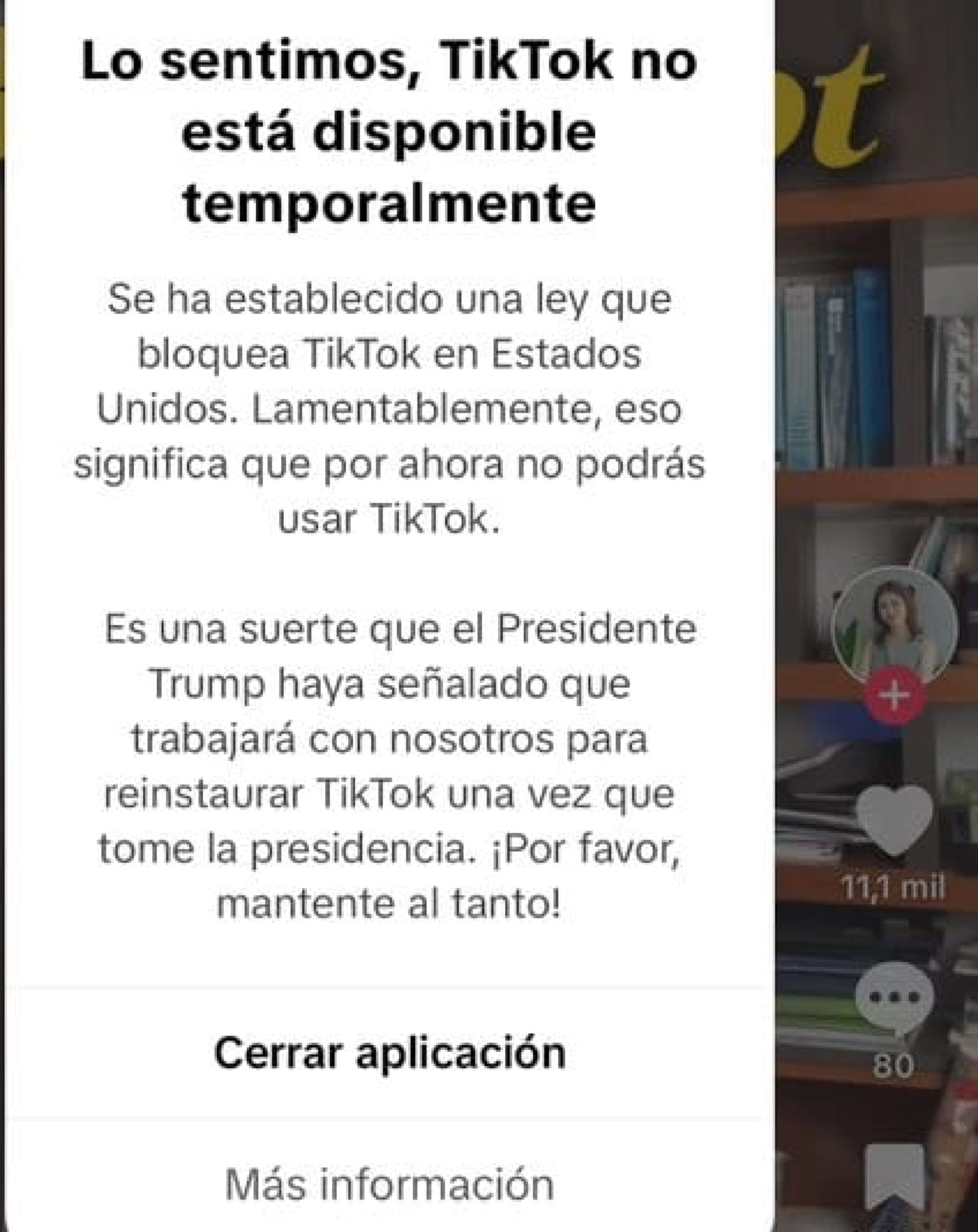 “Desafortunadamente, eso significa que no puedes usar TikTok por ahora”.