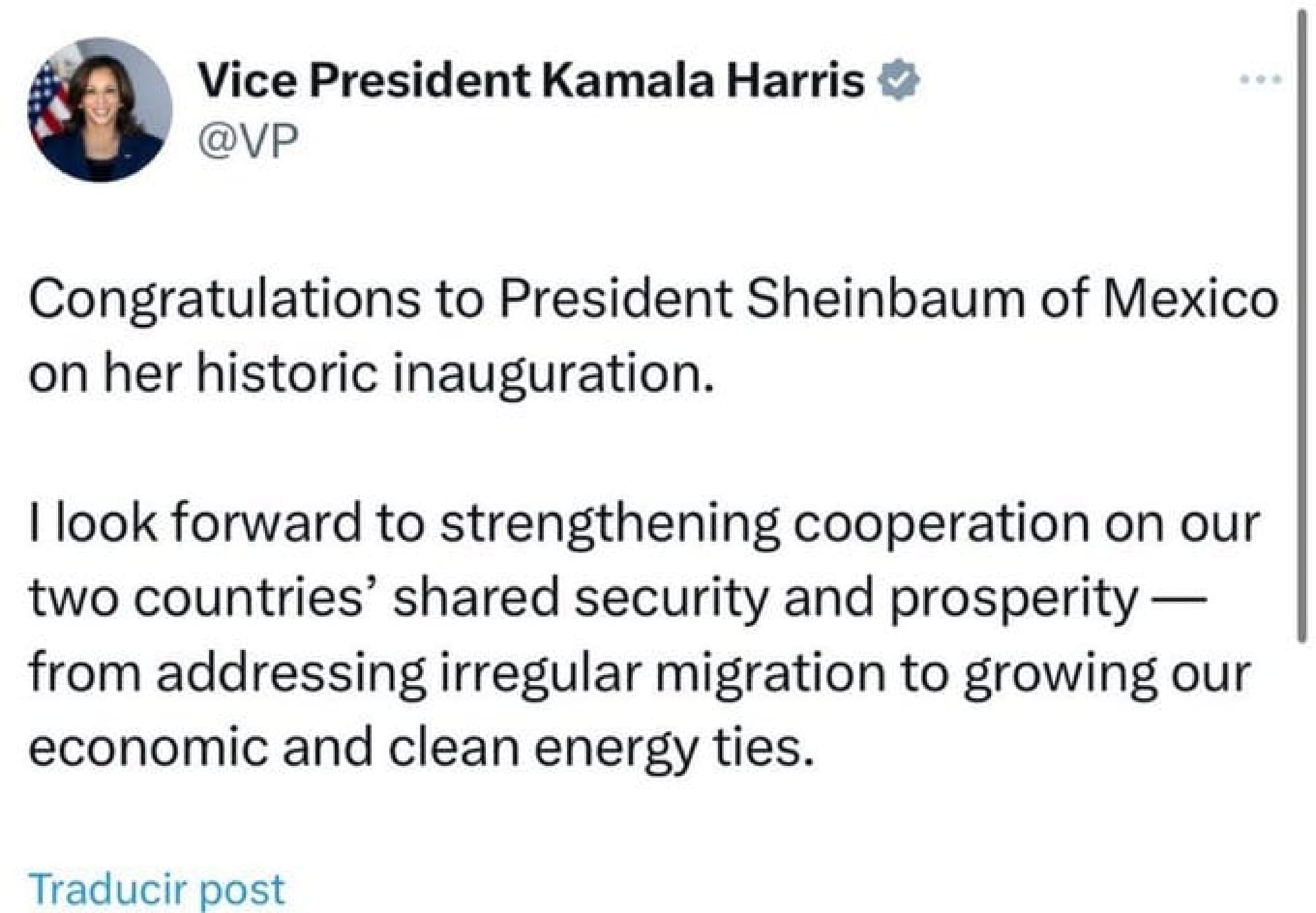Felicidades a la presidenta Sheinbaum de México por su histórica investidura.