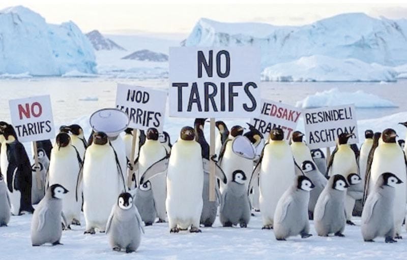 *Opositores de Trump simbolizan lo absurdo de guerra comercial con arancel impuesto a las Islas Heard y McDonald, donde sólo viven pingüinos.