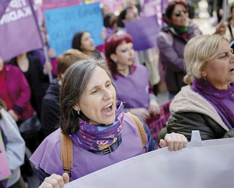 “Hay acoso en el trabajo, presión por parte de los esposos y padres en casa y presión de la sociedad patriarcal. Exigimos que esta presión se reduzca aún más”, dijo Yaz Gulgun, de 52 años de edad.