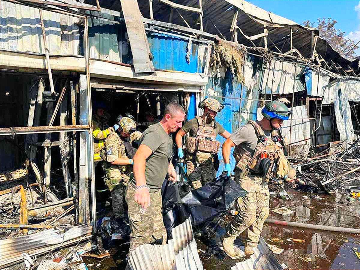 Según detalló el presidente ucraniano, Volodimir Zelenski, el lugar del impacto del misil se trataba de "un mercado normal, con tiendas y una farmacia" y se ha cobrado la vida de "personas inocentes".