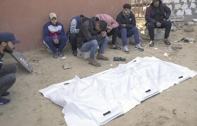 Un niño lloraba por su padre en Khan Younis, en el sur de Gaza, y una mujer se tendió sobre uno de los cuerpos envueltos en plástico blanco.