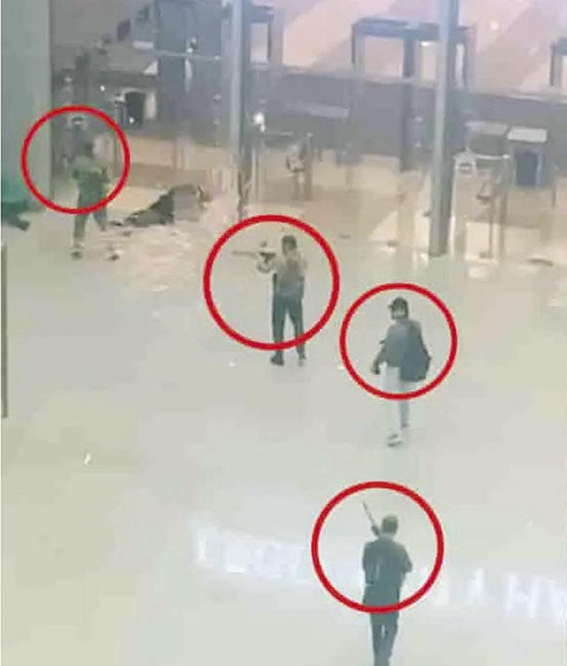 También se veía gente que yacía inmóvil entre los charcos de sangre fuera del pasillo.