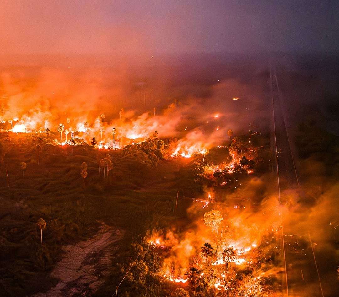 Un gran incendio arrasa los alrededores de la autopista BR-262 en la ciudad de Miranda, Brasil. Las llamas continúan devorando este domingo todo lo que encuentran a su paso en el Pantanal, el mayor humedal del planeta, en medio de un clima de tensión con los terratenientes de la zona, que usan el silencio y la coacción para evitar la difusión del desastre.