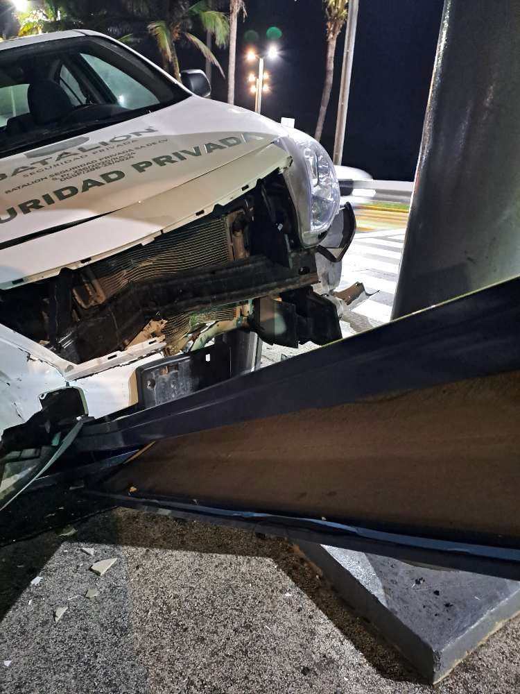 La madrugada de este viernes, un empleado de la empresa de seguridad privada Batalion salvó la vida tras impactarse contra unos bolardos y un poste sobre el Boulevard Manuel Ávila Camacho, casi esquina con Simón Bolívar, en la colonia Ignacio Zaragoza de esta ciudad.