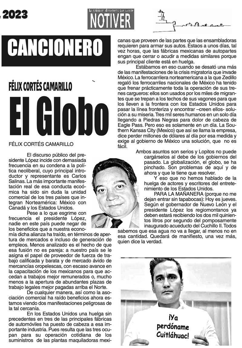 LAS COLUMNAS CANCIONERO EL GLOBO... 21 septiembre 2023 Más Noticias TEXTO IRREVERENTE | SIEMPRE FLOTA - “Lo bofo siempre flota”, se dice aunque no es el adagio original ya que se tomó de la física, concretamente del Principio de Arquímedes que estipula que “todo cuerpo total o parcialmente sumergido en un... ACERTIJOS | EL PARIENTE ARQUITECTO - Es un primo muy querido. Hijo del jalapeño arquitecto Hermas Haaz Pavón, hermano de mi padre Enrique. Desde chicos nos tratamos, trato de presumir a la familia pues fue y es un arquitecto renombrado y jubilado… DE MÉDICO, POETA Y…. | EL IMSS NO ES EL ENEMIGO” - "Mientras en redes se lanzan insultos y memes contra el IMSS, en los pasillos del hospital aún suenan los monitores, los gritos de urgencia y el eco de quienes pelean por mantener con vida a desconocidos… CANCIONERO | YA LLEGÓ, YA ESTÁ AQUÍ - Cuál más cuál menos, todos tenemos en estos tiempos un gusanito en la oreja cuando la plática entra en los terrenos de la inteligencia artificial. Hay tantos criterios encontrados sobre esta herramienta, como… SIN TACTO | SOLO Y SÓLO /2 - Decía ayer que la Real Academia Española de la Lengua, fundada en 1713 por el marqués de Villena, ha hecho mucho y poco por el idioma. Mucho, porque ha conseguido parcialmente que nuestra grafía... A MIL POR HORA | - **Más pecados mortales **Gólgota en Veracruz **Jarocho premiado **Fracaso médico... LAS COSAS COMO SON - LOS EJERCICIOS... SIN TACTO | SOLO Y SÓLO /1 - Ha resultado muy polémica en el mundo de habla hispana la regla gramatical que impuso en 2010 la Real Academia Española de la Lengua cando desapareció el acento diacrítico para diferenciar el adjetivo “solo”… TEXTO IRREVERENTE | TURISMO DE BUFFET - Apresurados por revertir la mala publicidad de la marea negra contaminando el mar y el litoral jarochos, los propagandistas del gobierno estatal se pasaron el fin de semana difundiendo que las playas... ACERTIJOS | EL ABUELO SEBASTIAN EL CANO - Notiver lo tituló muy bien. Llegó a Veracruz el abuelo del Cuauhtémoc, el Buque Escuela español, Juan Sebastián Elcano, arribó al muelle del puerto de Veracruz y enseguida se convirtió en un sitio turístico...