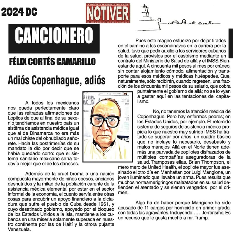 CANCIONERO | ADIÓS COPENHAGUE, ADIÓS - A todos los mexicanos nos queda perfectamente claro que las reitradas afirmaciones de Lopitos de que al final de su sexenio tendríamos en nuestro país un sistema...
