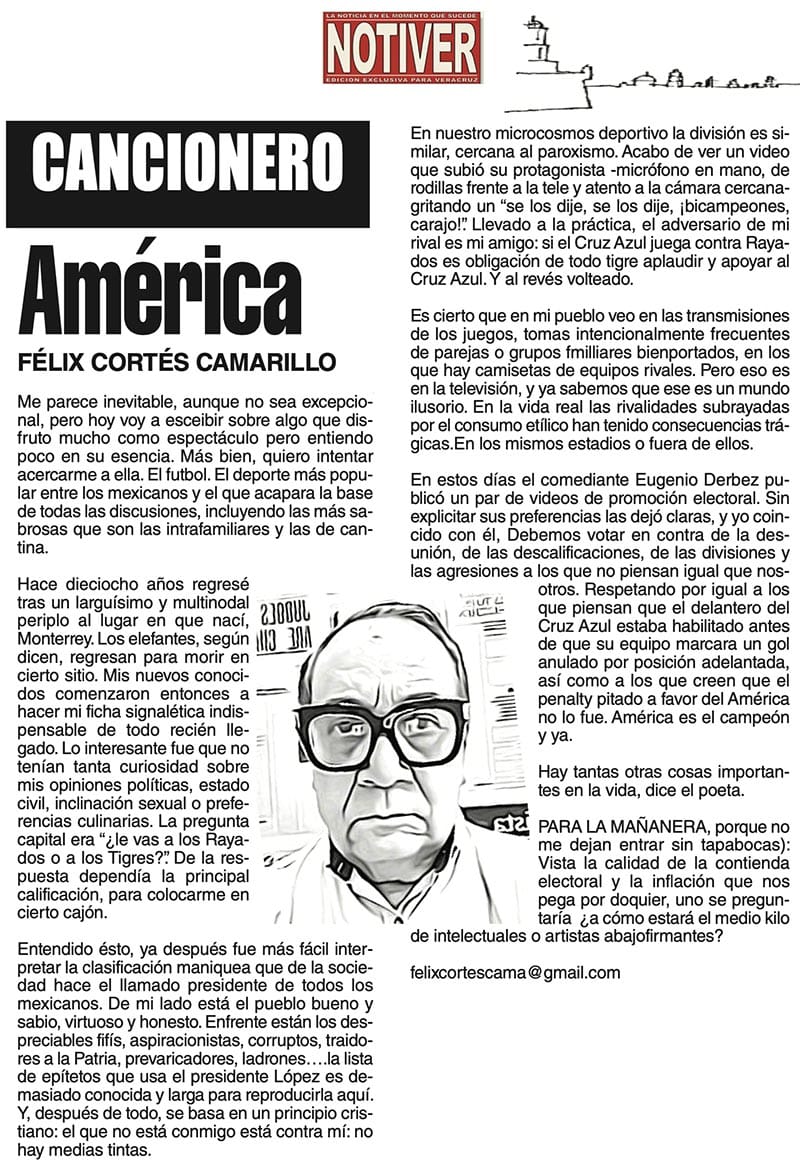 CANCIONERO | AMÉRICA - Me parece inevitable, aunque no sea excepcional, pero hoy voy a escribir sobre algo que disfruto mucho como espectáculo pero entiendo poco en su esencia. Más bien...