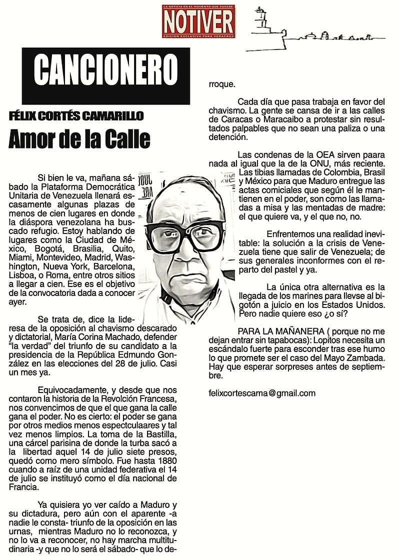 CANCIONERO | AMOR DE LA CALLE - Si bien le va, mañana sábado la Plataforma Democrática Unitaria de Venezuela llenará escasamente algunas plazas de menos de cien lugares en donde la diáspora venezolana...