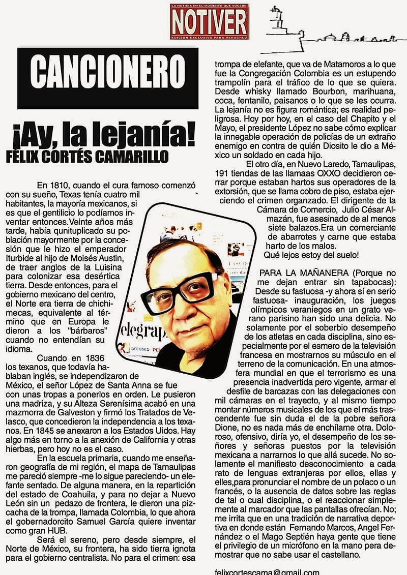 CANCIONERO | ¡AY, LA LEJANÍA! - En 1810, cuando el cura famoso comenzó con su sueño, Texas tenía cuatro mil habitantes, la mayoría mexicanos, si es que el gentilicio lo podíamos inventar entonces. Veinte años más...