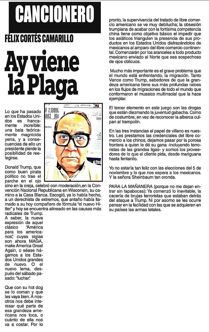 CANCIONERO | AY VIENE LA PLAGA - Lo que ha pasado en los Estados Unidos es francamente increíble: una bala teóricamente magnicida yerra, y a consecuencias de ello un presidente pierde la posibilidad de reelegirse...
