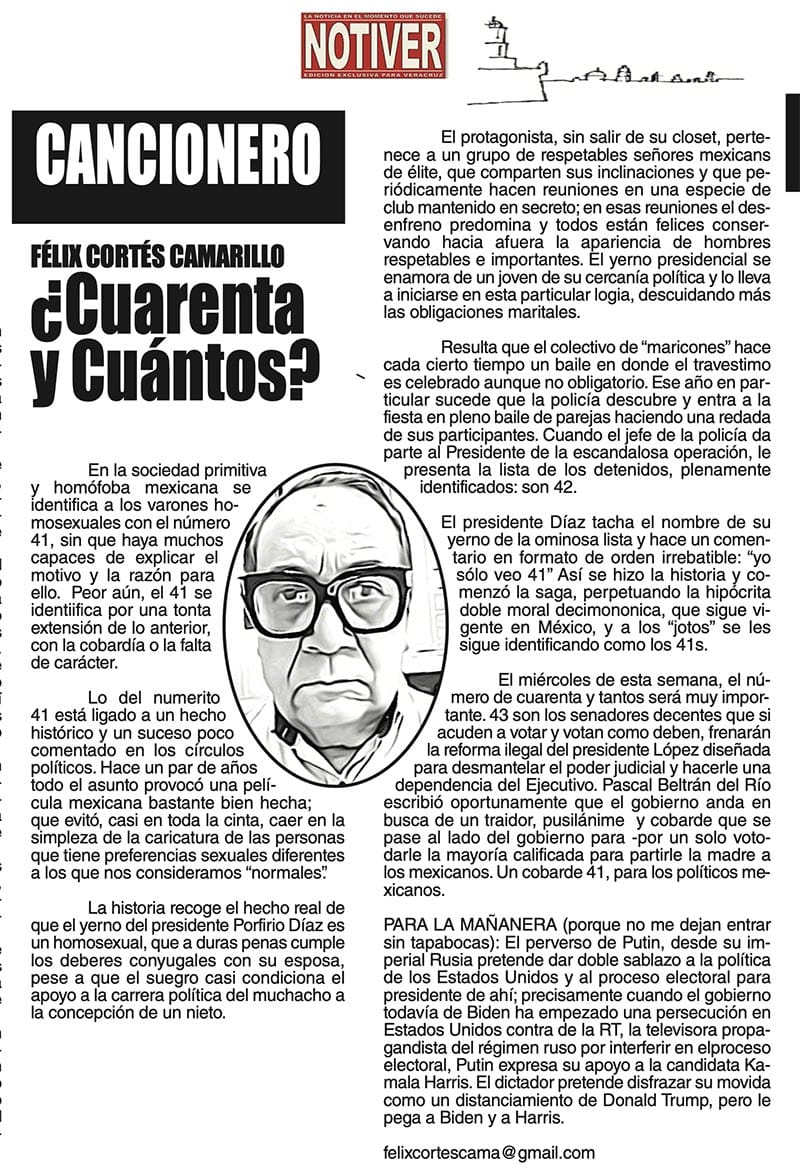 CANCIONERO | ¿CUARENTA Y CUÁNTOS? - En la sociedad primitiva y homófoba mexicana se identifica a los varones homosexuales con el número 41, sin que haya muchos capaces de explicar el motivo y la razón para ello...