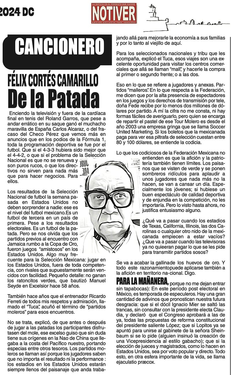 CANCIONERO | DE LA PATADA - Enciendo la televisión y fuera de la cardíaca final en tenis del Roland Garros, que pese a andar errático en su saque ganó el muchacho maravilla de España Carlos Alcaraz...