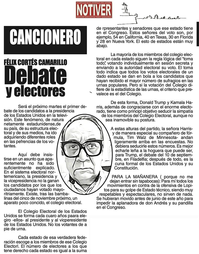 CANCIONERO | DEBATE Y ELECTORES - Será el próximo martes el primer debate de los candidatos a la presidencia de los Estados Unidos en la televisión. Este fenómeno, de natura netamente estadunidense...