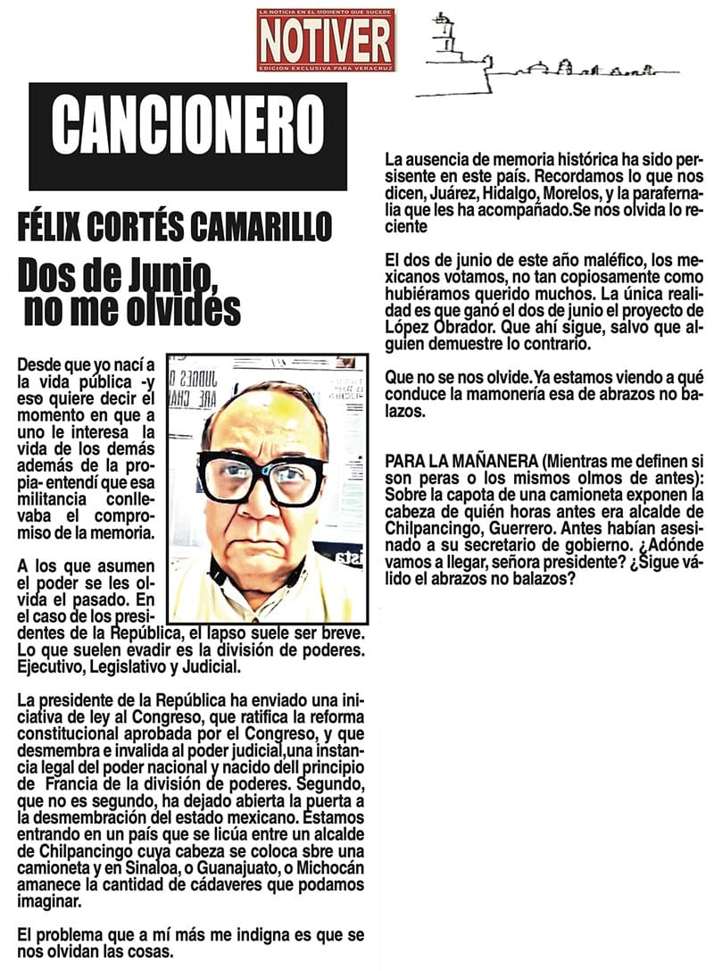 CANCIONERO | DOS DE JUNIO NO ME OLVIDES - Desde que yo nací a la vida pública -y eso quiere decir el momento en que a uno le interesa la vida de los demás, además de la propia- entendí que esa militancia conllevaba el compromiso...