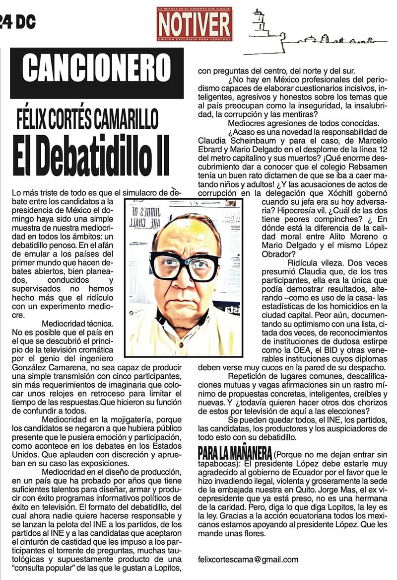 CANCIONERO | EL DEBATILLO II - Lo más triste de todo es que el simulacro de debate entre los candidatos a la presidencia de México el domingo haya sido una simple muestra ...
