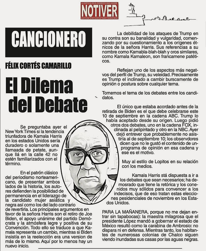 CANCIONERO | EL DILEMA DEL DEBATE - Se preguntaba ayer el New York Times si la tendencia triunfadora de Kamala Harris en los estados Unidos sería duradero o solamente una llamada de petate, aunque llá en la calle 42...