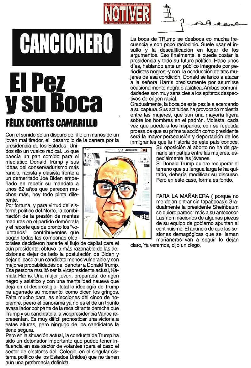 CANCIONERO | EL PEZ Y SU BOCA - Con el sonido de un disparo de rifle en manos de un joven mal tirador, el desarrollo de la carrera por la presidencia de los Estados Unidos dio un vuelco radical. Lo que parecía un pan comido...