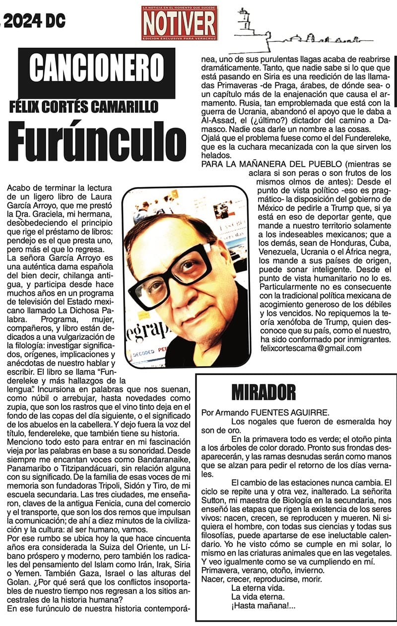 CANCIONERO | FURÚNCULO - Acabo de terminar la lectura de un ligero libro de Laura García Arroyo, que me prestó la Dra. Graciela, mi hermana, desobedeciendo el principio que rige el préstamo...