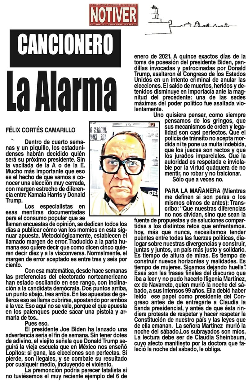 CANCIONERO | LA ALARMA - Dentro de cuarto semanas y un piquillo, los estadunidenses habrán decidido quién será su próximo presidente. Sin la vacilada de la A o de la E. Mucho mas importante que...