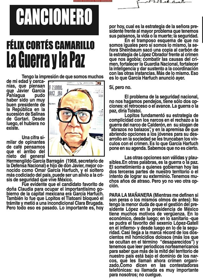 CANCIONERO | LA GUERRA Y LA PAZ - Tengo la impresión de que somos muchos de mi edad y cercanías, que piensan que Javier García Paniagua pudo haber sido un muy buen presidente de la República en la sucesión...