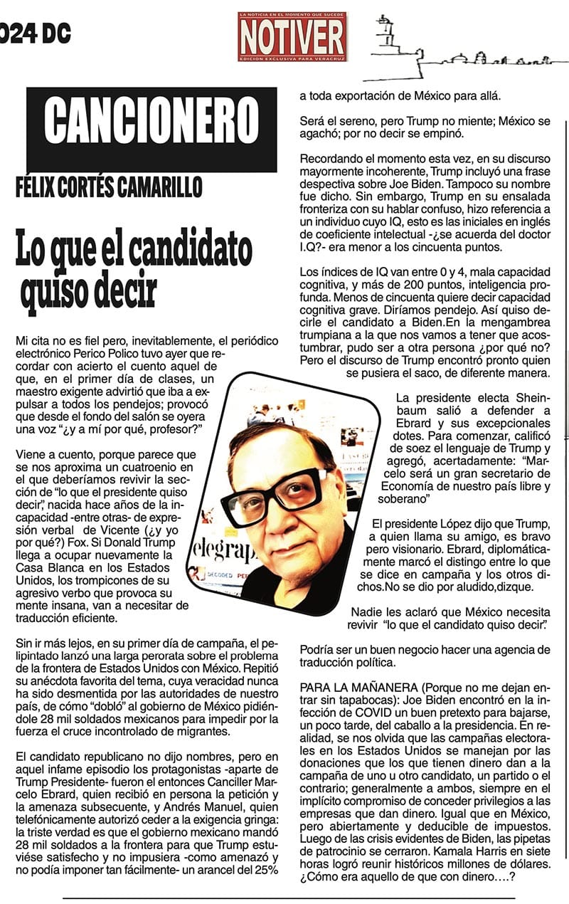 CANCIONERO | LO QUE EL CANDIDATO QUISO DECIR - Mi cita no es fiel pero, inevitablemente, el periódico electrónico Perico Polico tuvo ayer que recordar con acierto el cuento aquel de que, en el primer día de clases, un maestro exigente...