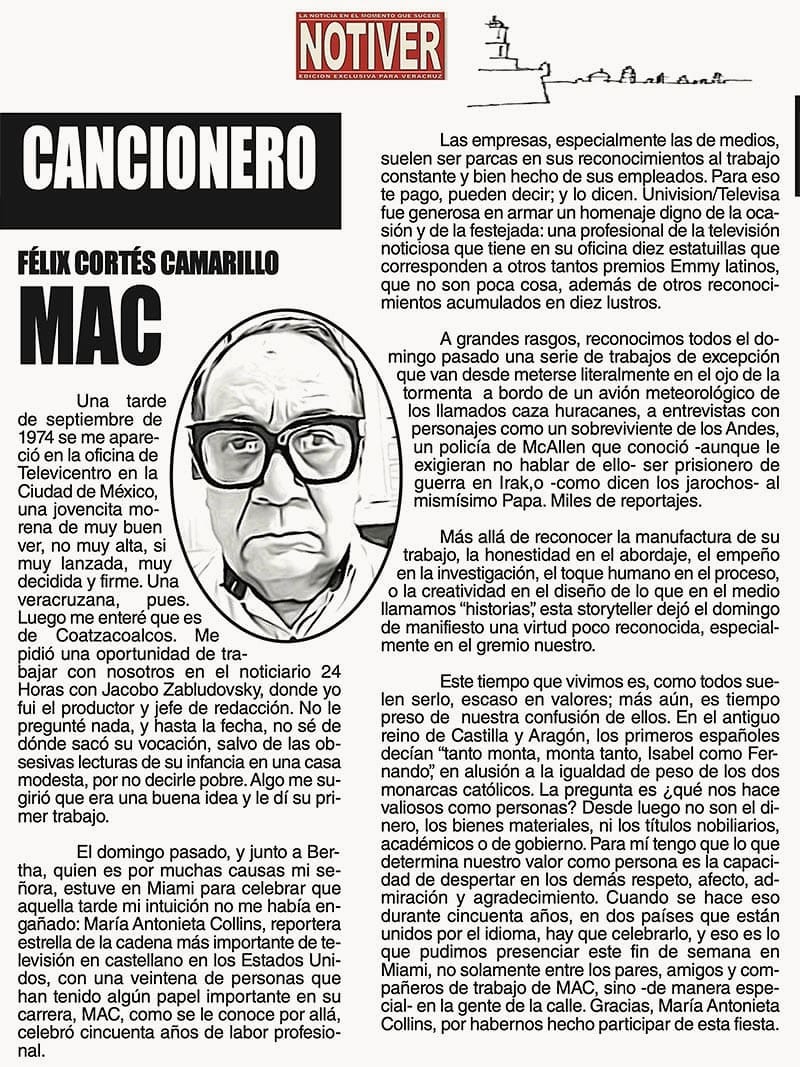 CANCIONERO | MAC - Una tarde de septiembre de 1974 se me apareció en la oficina de Televicentro en la Ciudad de México, una jovencita morena de muy buen ver, no muy alta, si muy lanzada, muy decidida y firme...