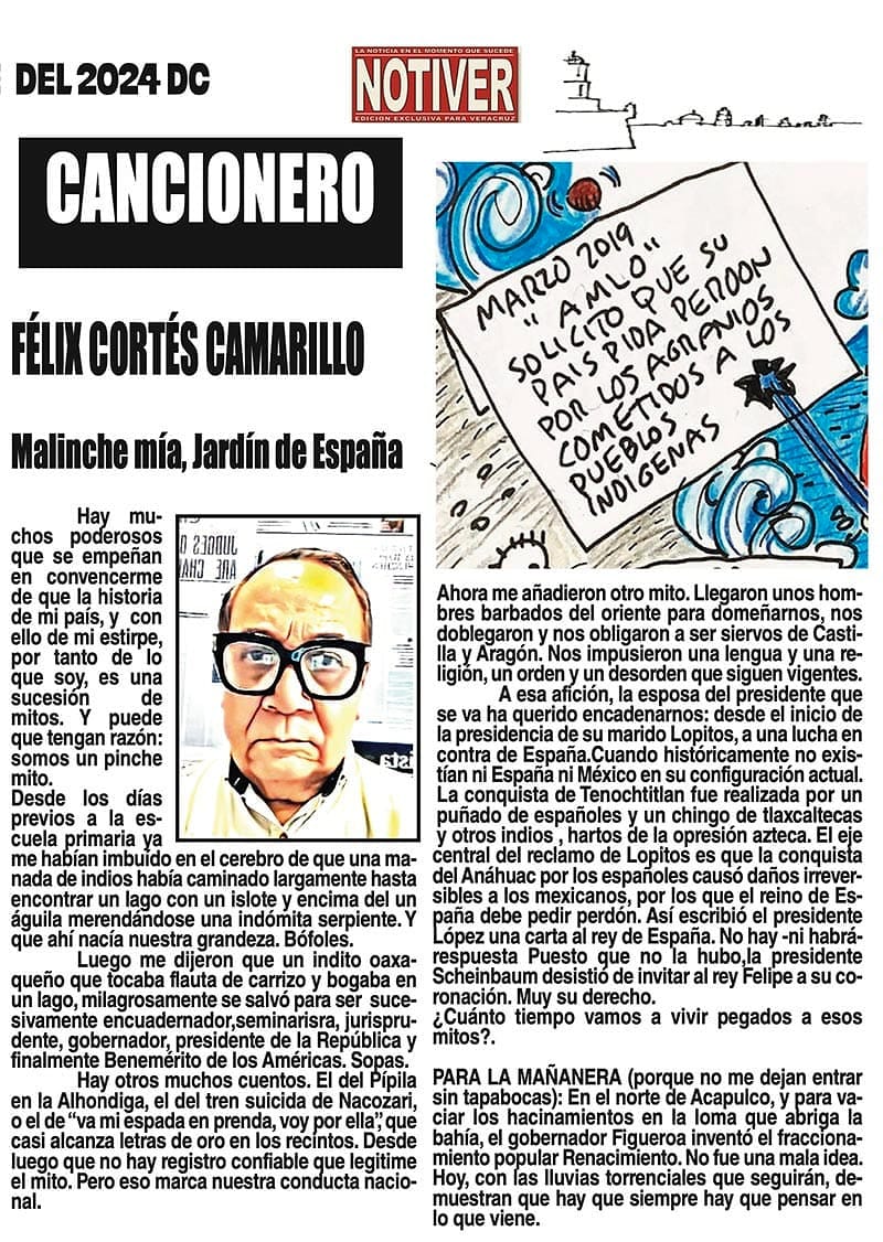 CANCIONERO | MALINCHE MÍA, JARDÍN DE ESPAÑA - Hay muchos poderosos que se empeñan en convencerme de que la historia de mi país, y con ello de mi estirpe, por tanto de lo que soy, es una sucesión de mitos...