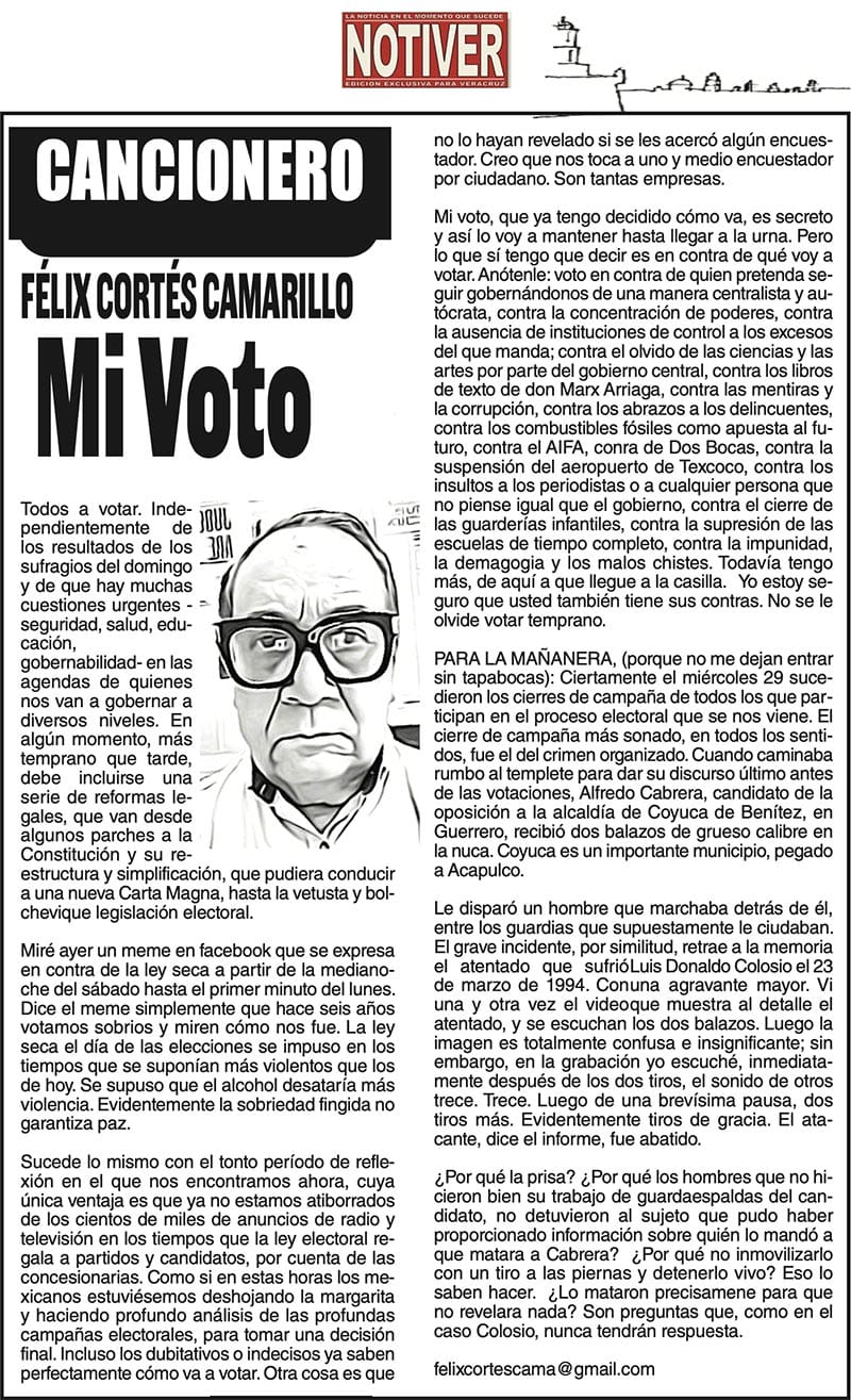 CANCIONERO | MI VOTO - Todos a votar. Independientemente de los resultados de los sufragios del domingo y de que hay muchas cuestiones urgentes -seguridad, salud, educación, gobernabilidad...