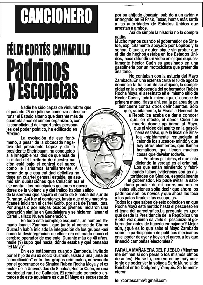 CANCIONERO | PADRINOS Y ESCOPETAS - Nadie ha sido capaz de vislumbrar que el pasado 25 de julio se comenzó a desmoronar el Estado alterno que durante más de cuarenta años el crimen organizado, con la complicidad...