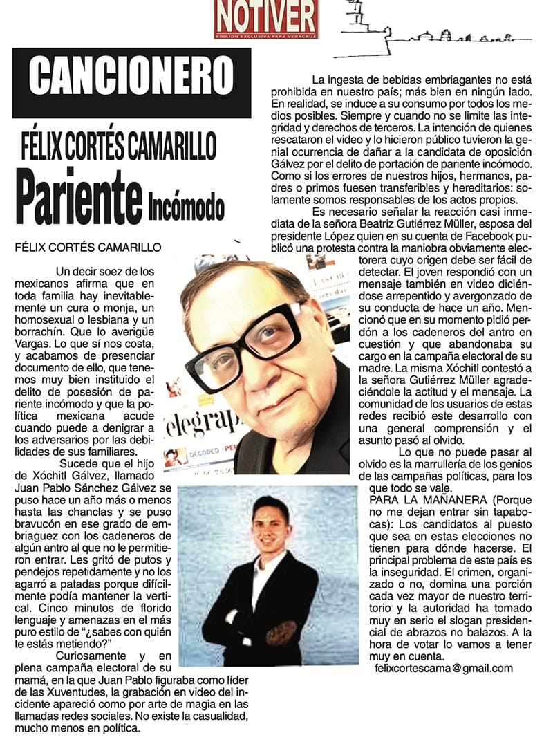 CANCIONERO | PARIENTE INCÓMODO - Un decir soez de los mexicanos afirma que en toda familia hay inevitablemente un cura o monja, un homosexual o lesbiana y un borrachín...