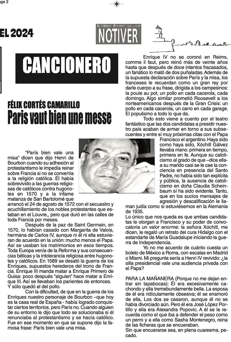 CANCIONERO | PARIS VAUT BIEN UNE MESSE - "París bien vale una misa" dicen que dijo Henri de Bourbon cuando su adhesión al protestantismo le impedía reinar sobre Francia...