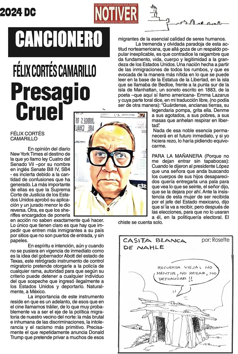 CANCIONERO | PRESAGIO CRUEL - En opinión del diario New York Times el destino de la que yo llamo ley Cuatro del Senado Vil -por su nombre en inglés Senate Bill IV, SB4- es incierta debido a la cantidad de confusiones que ha generado...