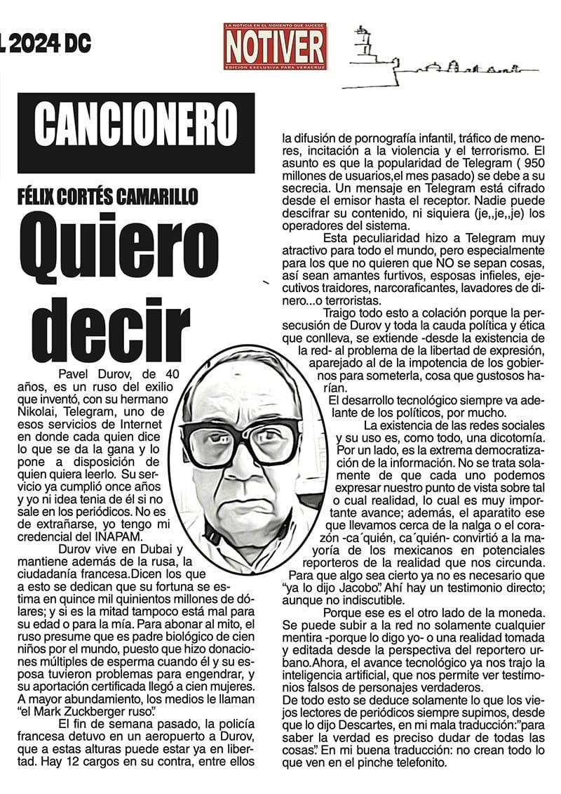 CANCIONERO | QUIERO DECIR - Pavel Durov, de 40 años, es un ruso del exilio que inventó, con su hermano Nikolai, Telegram, uno de esos servicios de Internet en donde cada quien dice lo que se da la gana y...