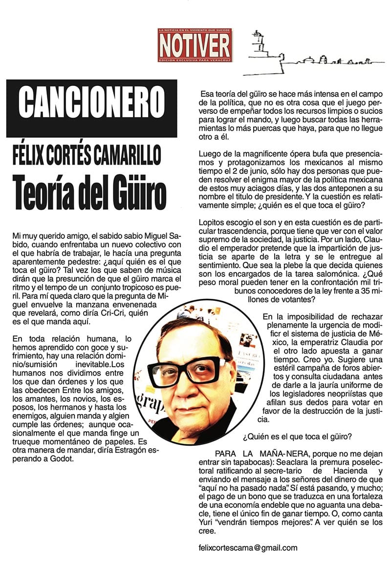 CANCIONERO | TEORÍA DEL GÜIRO - Mi muy querido amigo, el sabido sabio Miguel Sabido, cuando enfrentaba un nuevo colectivo con el que habría de trabajar, le hacía una pregunta aparentemente pedestre...