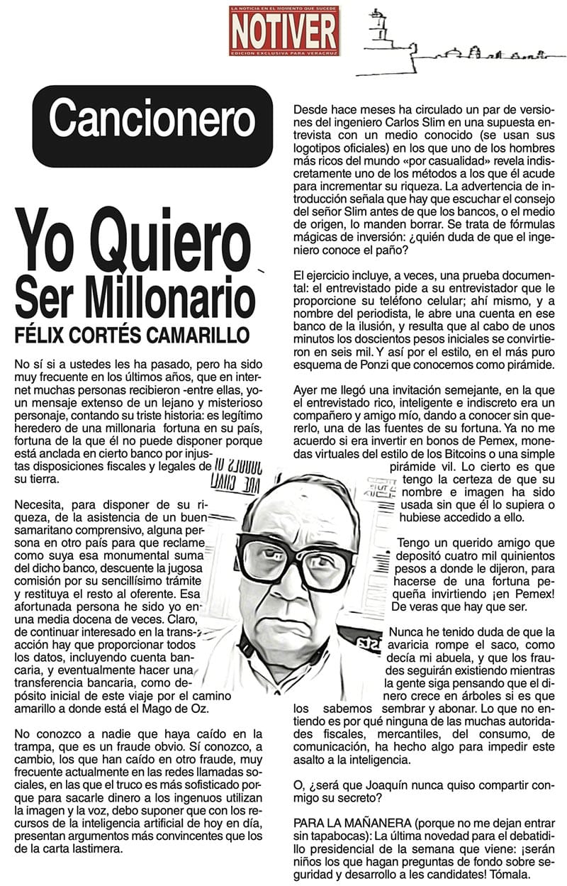 CANCIONERO | YO QUIERO SER MILLONARIO - No sí si a ustedes les ha pasado, pero ha sido muy frecuente en los últimos años, que en internet muchas personas recibieron -entre ellas, yo- un mensaje extenso de un lejano y misterioso personaje...