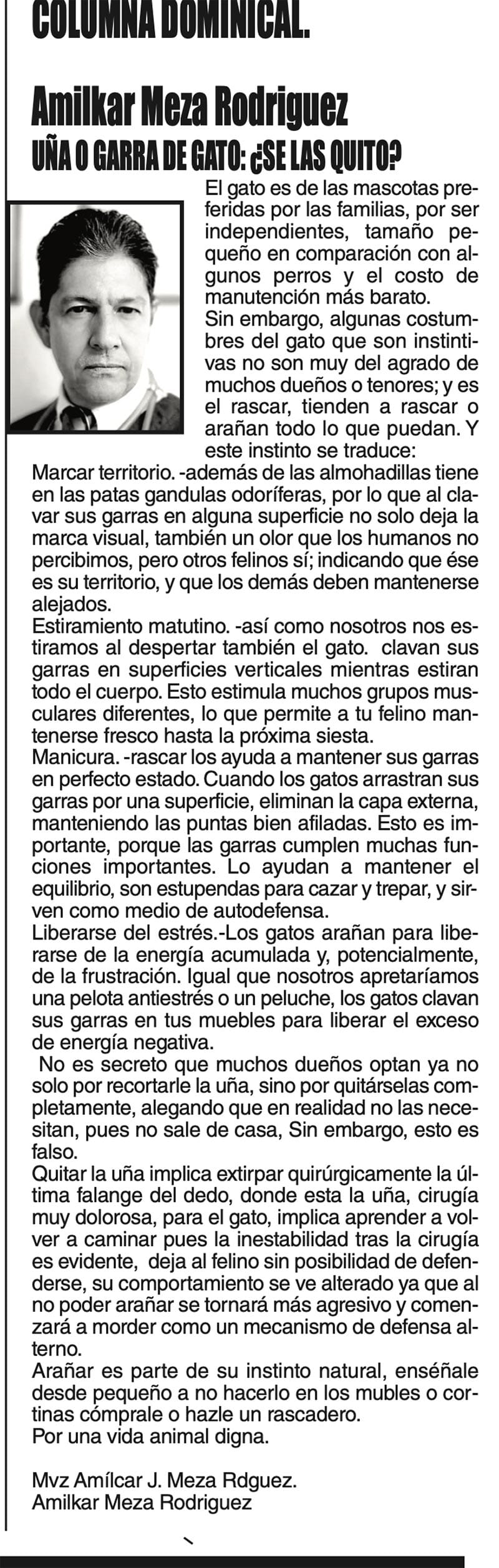 COLUMNA DOMINICAL | UÑA O GARRA DE GATO: CSE LAS QUITO? - El gato es de las mascotas preferidas por las familias, por ser independientes, tamaño pequeño en comparación con algunos perros y el costo de manutención más barato...