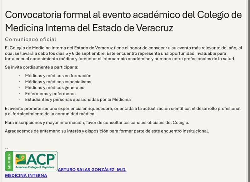 COMUNICADO OFICIAL | - CONVOCATORIA FORMAL AL EVENTO ACADÉMICO DEL COLEGIO DE MEDICINA INTERNA DEL ESTADO DE VERACRUZ...