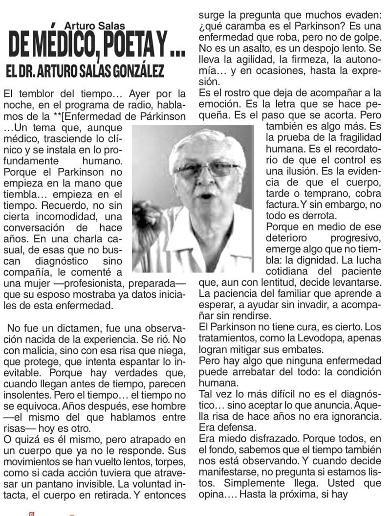 DE MÉDICO, POETA Y | EL TEMBLOR DEL TIEMPO... - Ayer por la noche, en el programa de radio, hablamos de la **[Enfermedad de Párkinson ...Un tema que, aunque médico, trasciende lo clínico y se instala en lo profundamente...