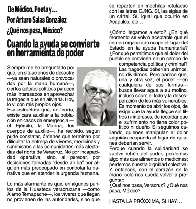 De MEDICO, POETA Y... | ¿QUÉ NOS PASA, MÉXICO? - Cuando la ayuda se convierte en herramienta de poder. Siempre me he preguntado por qué, en situaciones de desastre -ya sean naturales o provocadas por la mano humana-, ciertos actores políticos parecen...