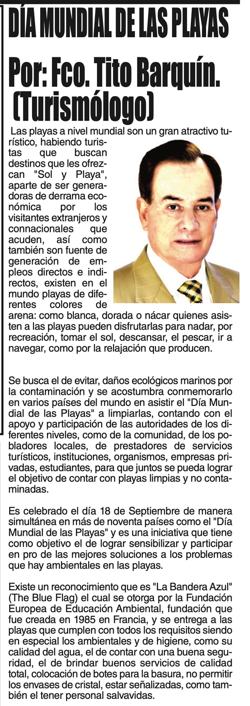 DIA MUNDIAL DE LAS PLAYAS | - Las playas a nivel mundial son un gran atractivo turístico, habiendo turistas que buscan destinos que les ofrezcan "Sol y Playa", aparte de ser generadoras de derrama...