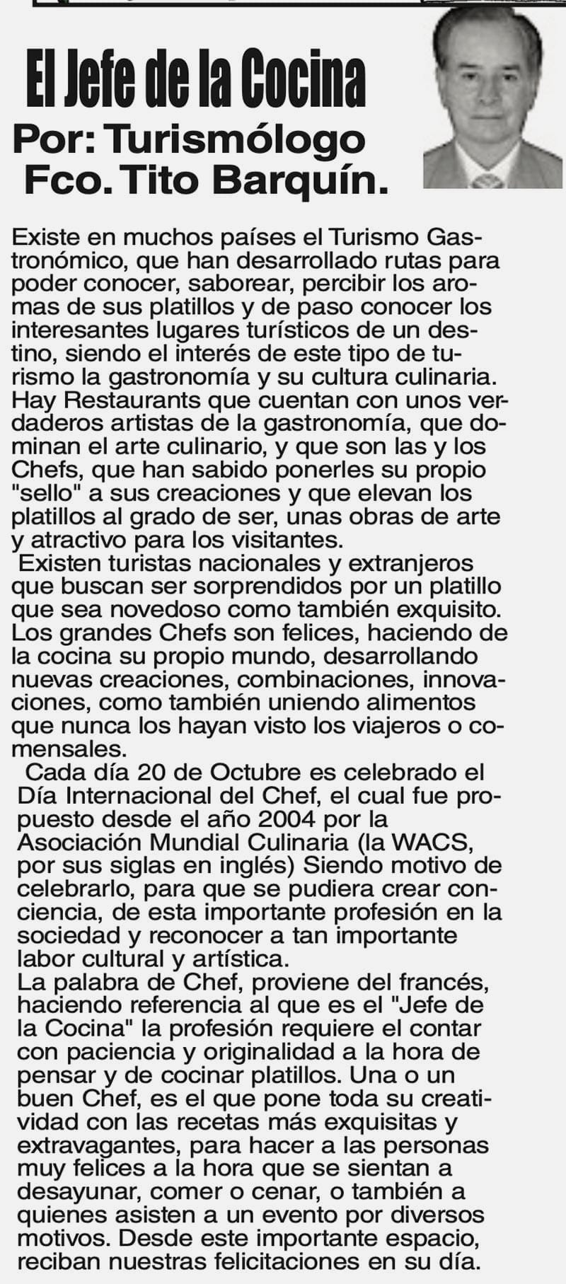 EL JEFE DE LA COCINA | - Existe en muchos países el Turismo Gastronómico, que han desarrollado rutas para poder conocer, saborear, percibir los aromas de sus platillos y de paso conocer los interesantes...